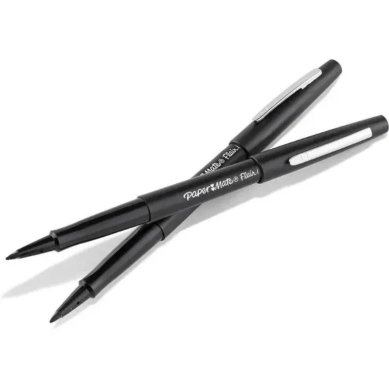 Plumigrafo Flair punta media, tiene una punta de filtro resistente, es ideal para escribir y dibujar a diario, resistente a manchas, goteos y fallas, tinta a base de agua que no traspasa el papel.